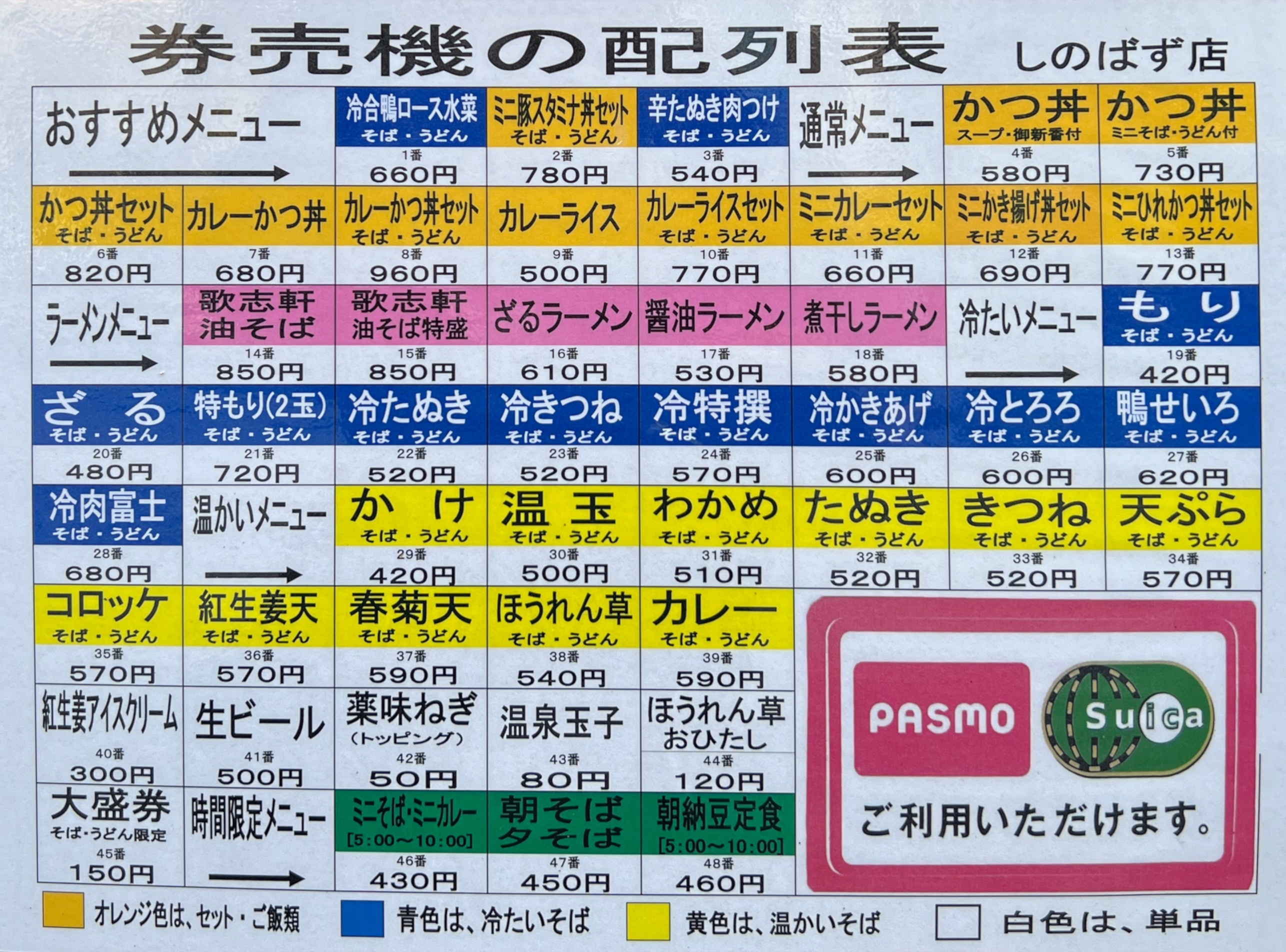 名代富士そば(しのばず店)のメニュー一覧